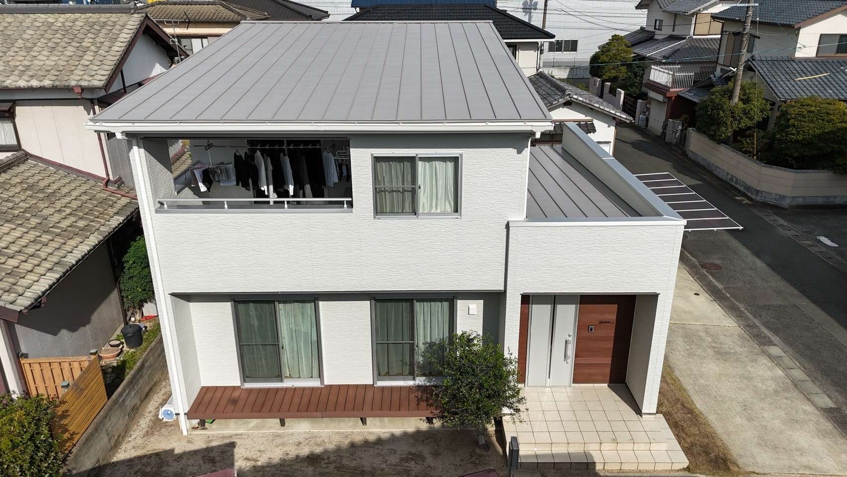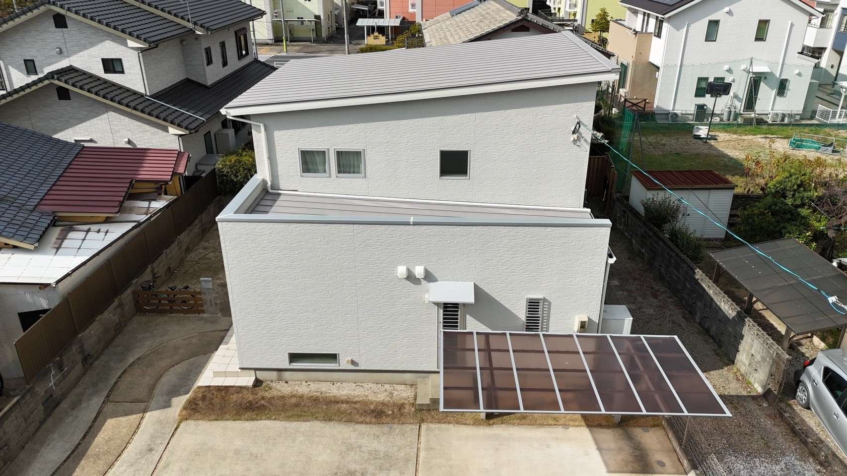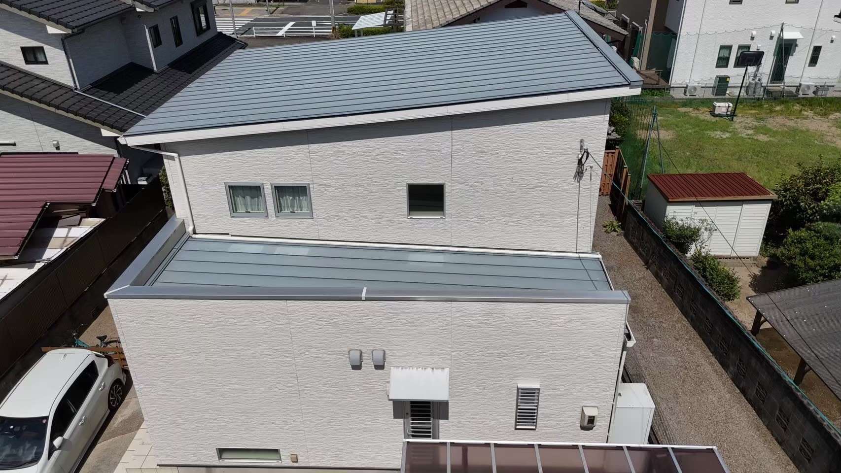 戸建て 屋根塗装工事 福岡県 外壁塗装工事 福岡県久留米市 S様邸 外壁・屋根塗装工事 福岡県久留米市のS様邸にて外壁・屋根塗装工事を行いました。今回、外壁はモダンホワイトでの多彩仕上げです。シンプルでありながら清潔感のある仕上がりとなりました。屋根には、断熱塗料の塗装を行いました。断熱効果のある塗料を使用することで、夏は暑さを抑え、冬は暖かさを保つことができ室内環境の快適さを向上させます。お住いのイメージチェンジや、快適性向上をお考えの方はぜひご相談ください。 Before navigate_next After 場所 福岡県久留米市 1 / 1 前の施工事例 戸建て 福岡県久留米市 S様邸 外壁塗装・屋根カバー工法 次の施工事例 戸建て 福岡県小郡市 T様邸 外壁・屋根塗装工事